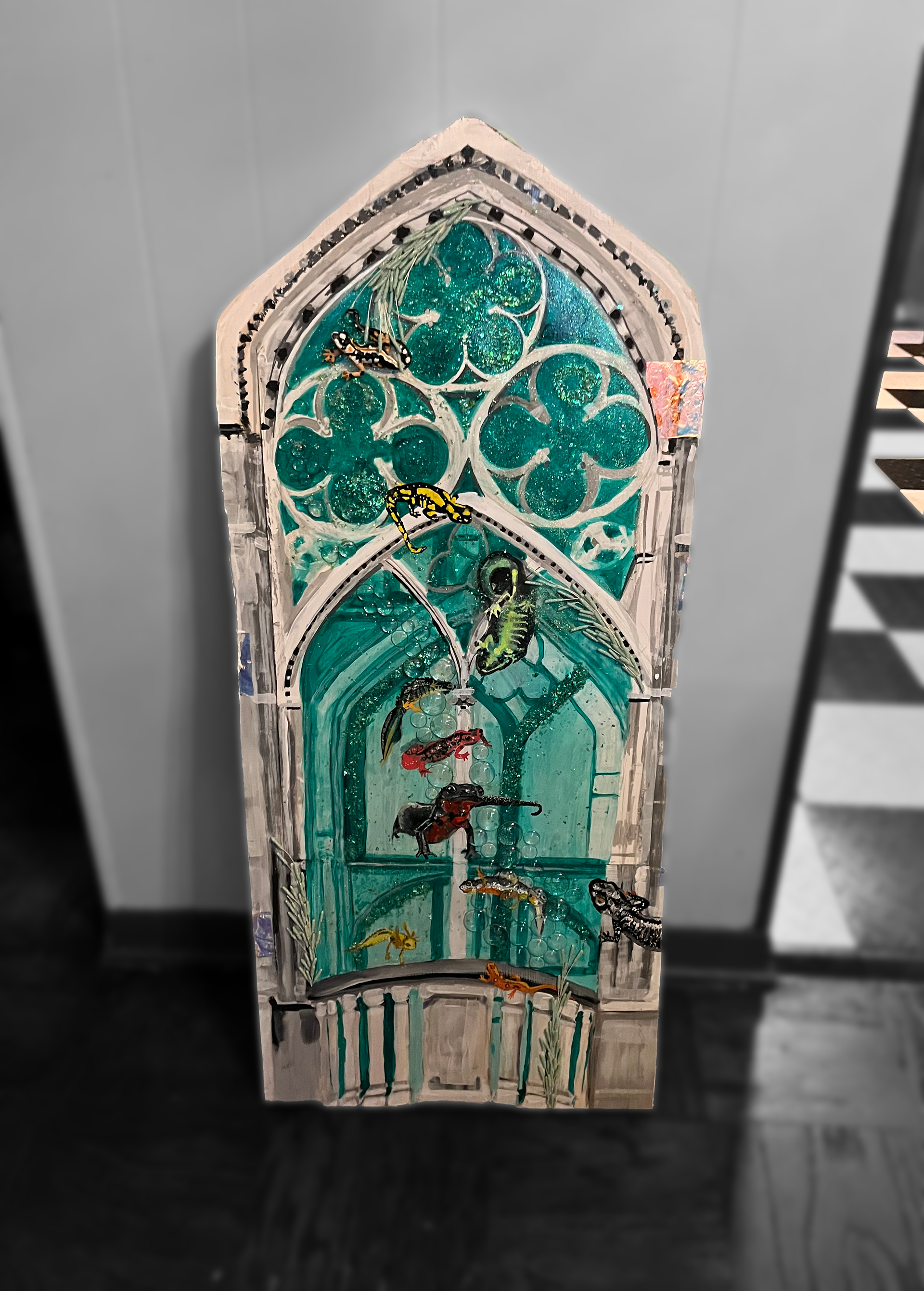 2022, Acrylic, mixed media, glitter on pine panel, 24X12"