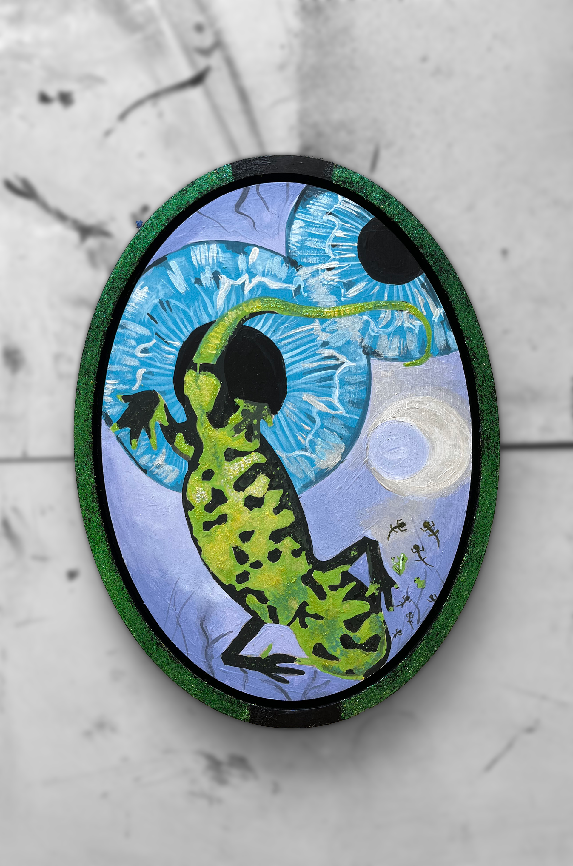 2022, acrylic and glitter on fir panel, 16 X 12"