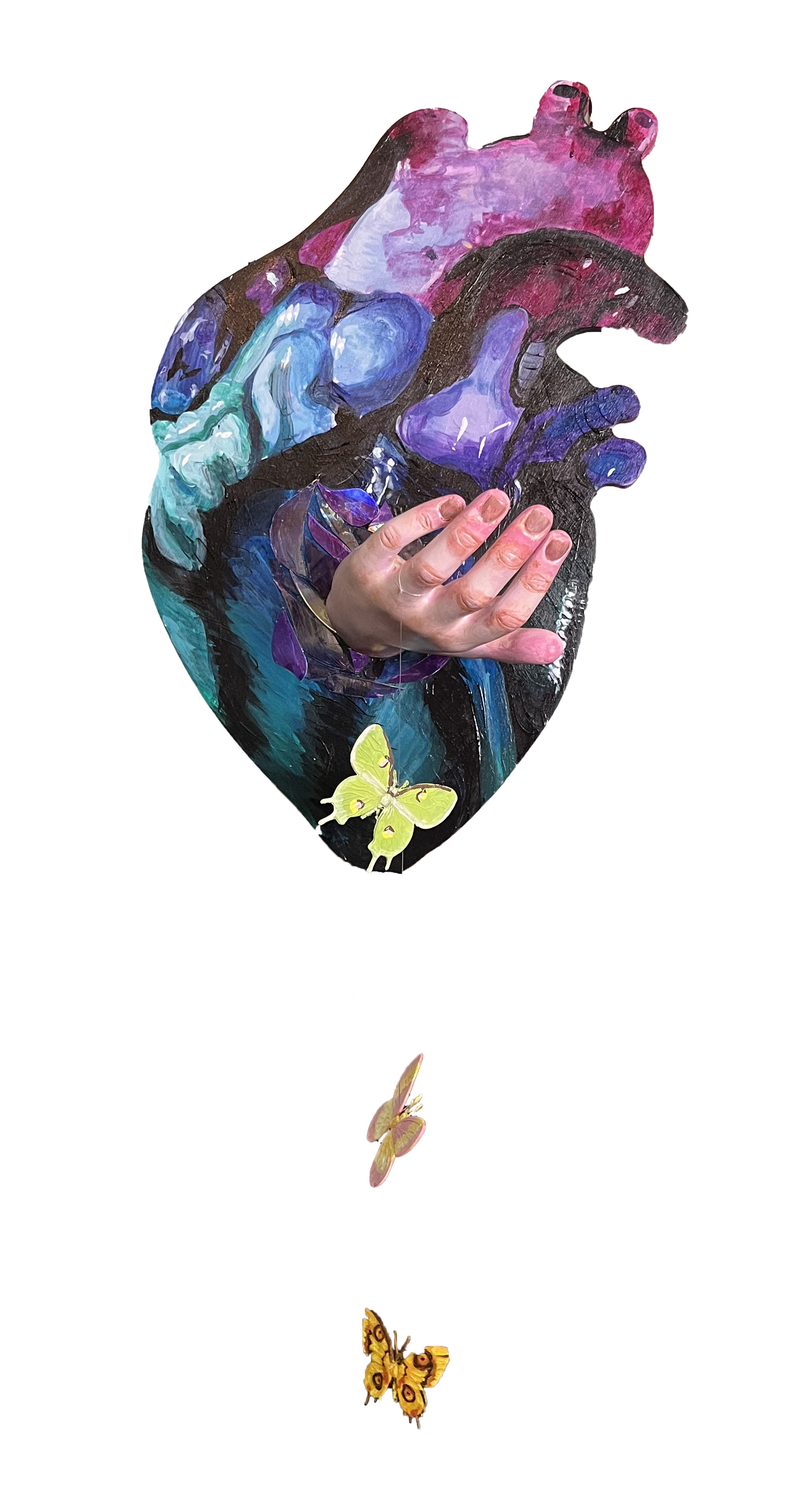 2025, acrylic, mannequin hand, CD Mosaic on wood panel, 16.5 x 11", $300
