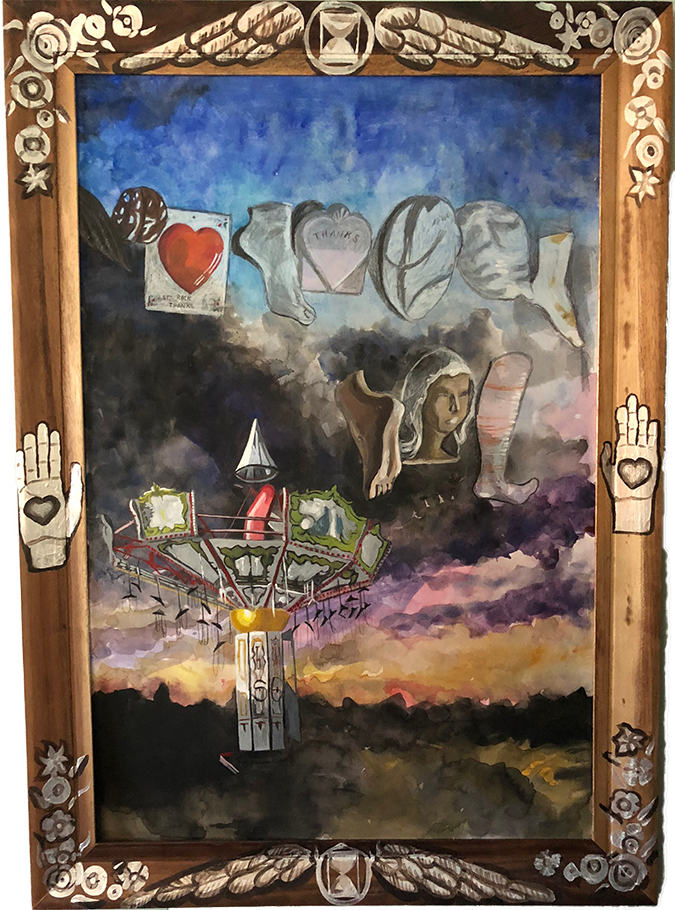 24” X 36” Mixed media: watercolor, acrylic and pencil color on multimedia board