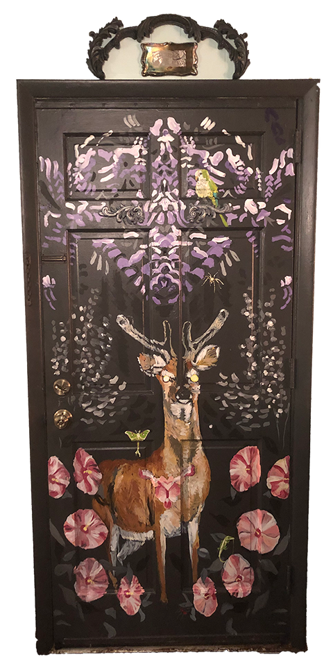 2020, Acrylic and mixed media on wood door, 41” x 82”